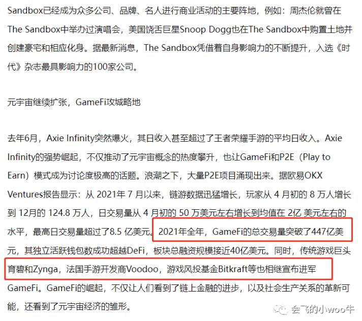 飞船,4大链游之首,游戏代币ETERNAL涨了800多倍,高峰期一度把BSC网络拥堵崩溃,我在飞船赚了很多钱,差不多几十万美金,资产有了质的飞跃,相当于跨越一个阶层,再后面就是Stepn跑鞋更加暴利。