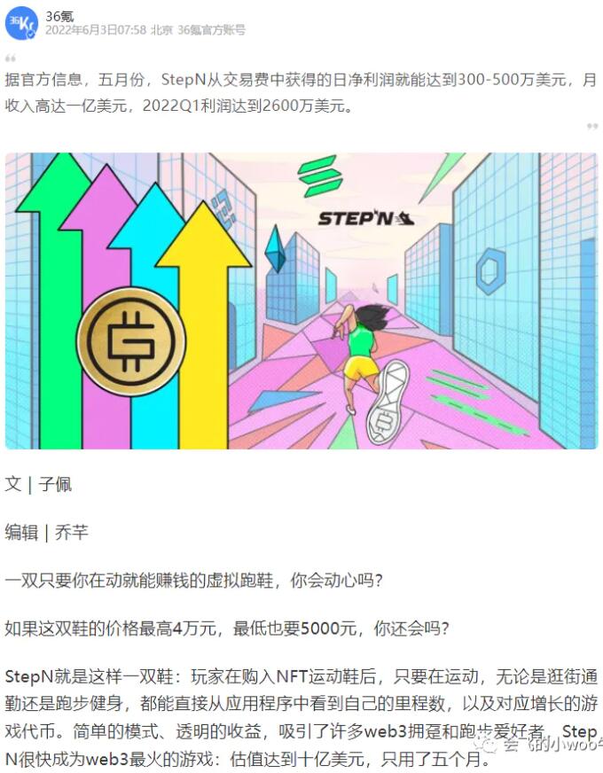 飞船之后我休息了一段时间,遇到了改变我人生的Stepn跑鞋,如果把飞船定义是完成了资本积累,那跑鞋是彻底完成了阶层跨越。